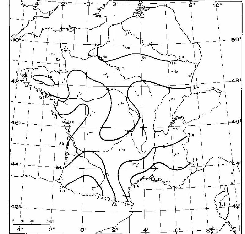 à la latitude, d'après l'Atlas Européen du rayonnement
